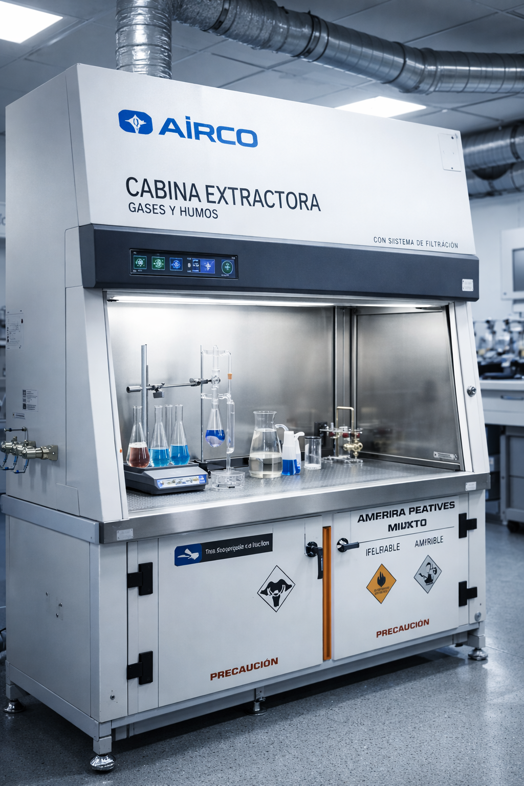 Líneas principales: cabinas de flujo laminar, cabinas extractoras, filtración y mobiliario.