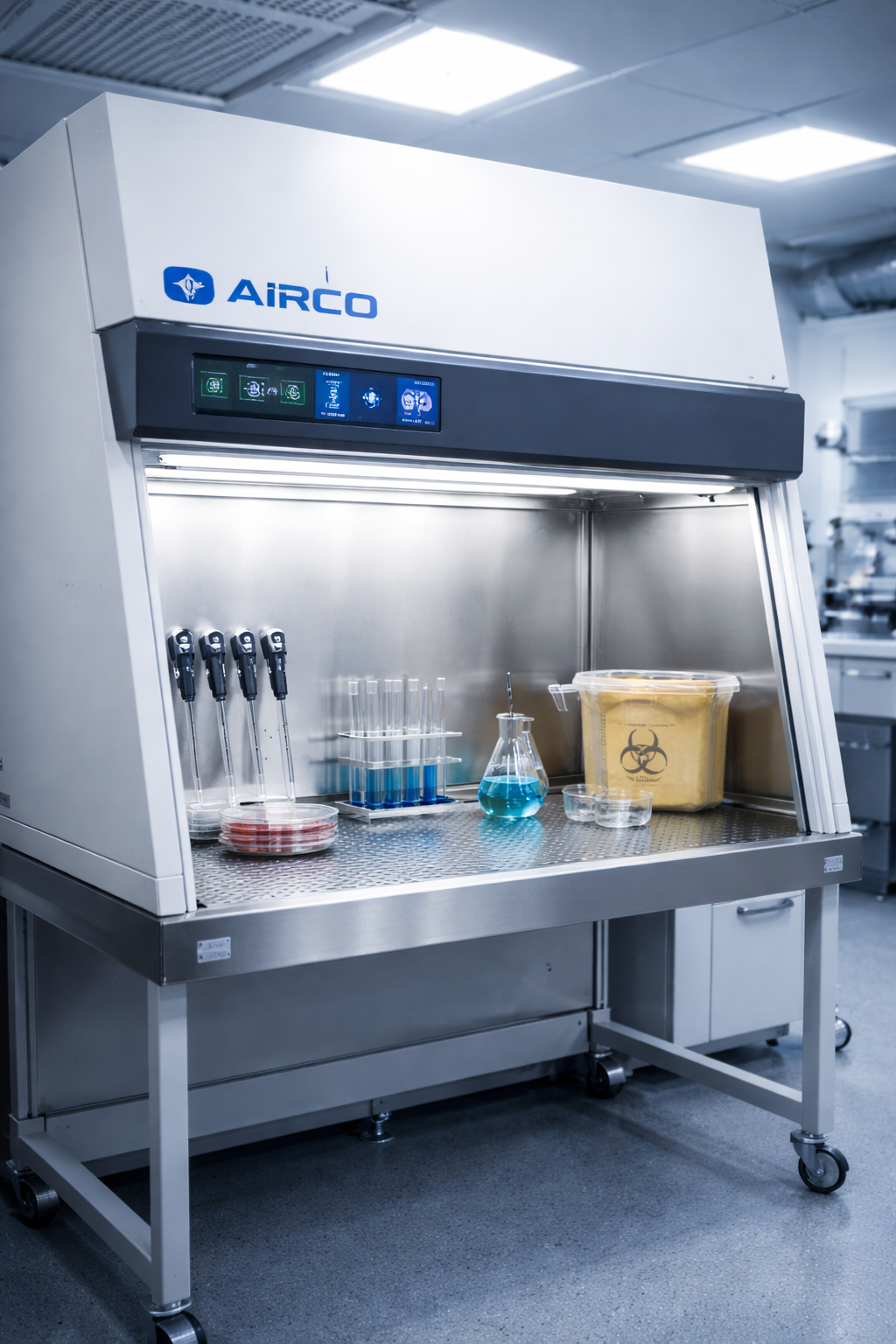 Cabinas de flujo laminar, diseño de área y mobiliario técnico orientado a procesos críticos.
